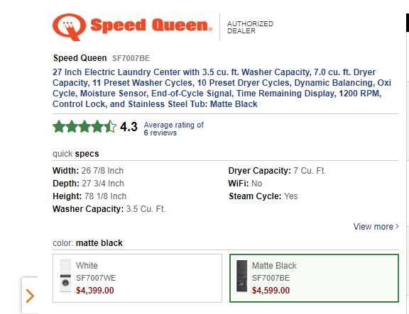 Speed Queen SPWADREW6010 Side-by-Side Washer & Dryer Set with Front Load Washer